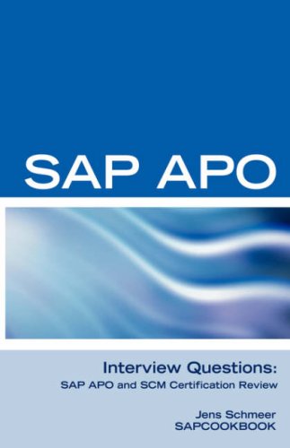 The Ultimate Reference & Learning Guide for SAP APO/SCM careers! With Certification Questions, Answers, and Explanations. It's clear that SAP APO/SCM is the future for supply chain optimization in SAP - but finding good reference materials can be difficult. Now, for the first time, a world class SAP consultant shares his knowledge and understanding of this complex topic. SAP APO Interview Questions, Answers, and Explanations guides you easily through your learning process. From helping you to assess your SAP APO skills, to helping screen candidates for your APO positions, SAP APO Interview Questions will help you understand what you really need to know. This book is organized around several areas of SAP APO: Demand Planning, Master Data, Basis, CoreInterFace (CIF), Production Planning, Transport Planning, and more. More than just a rehash of SAP documentation and sales presentations, each question is based on implementation project know-how gained on high-profile SAP APO implementations. Key topics include: SAP Advanced Planning and Optmization, SAP Supply Chain Management SCM, SAP Event Management, SAP Demand Planning, SAP Master Data, SAP CoreInterFace (CIF), SAP Production Planning PP.